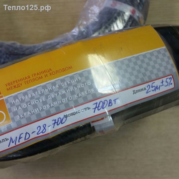 Кабель MFD-30-700Кабель MFD-30-700 Кабель для теплого пола и систем Антилёд - MFD-30. Мощность тепловыделения в отличие от кабеля CD-15, равняется 30 Вт. на метр длинны. Такая мощность позволяет укладывать кабели на улице, для подогрева ступеней пандусов и подъездных путей и добиваться мощности от 200 вт. на метр квадратный до 400вт метр квадратный. Что допускает использование кабеля как тёплые полы, система Антилед (предотвращение образование наледи), так и для плавления снега зимой на открытой поверхности (система стаивания льда и снега).