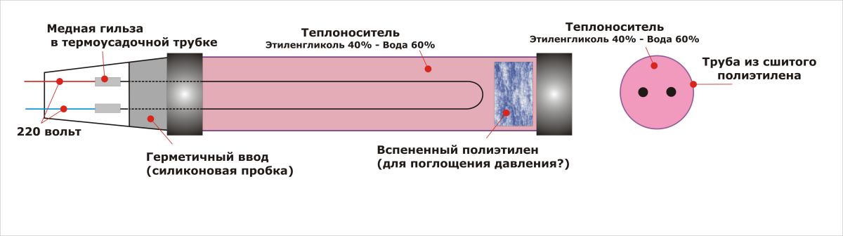 . Есть ещё одна особенность жидкостного теплого пола: жидкость в трубе, по мнению производителя, остывает дольше, из чего же состоит эта волшебная жидкость? По информации, полученной от продавца, 4 части этиленгликоля и 6 частей воды.